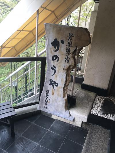 GWの家族旅行、渋川駅からバスで伊香保温泉へ到着。バス停から宿に電話、送迎バスが10分くらいで来てくれました。送迎バスで宿の駐車場に到着、ここからケーブルカーに乗って宿まで登ります。傾斜40度のかなり急勾配のケーブルカーです。登ったところが1階、チェックインして、部屋のほうに案内されました。