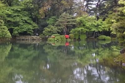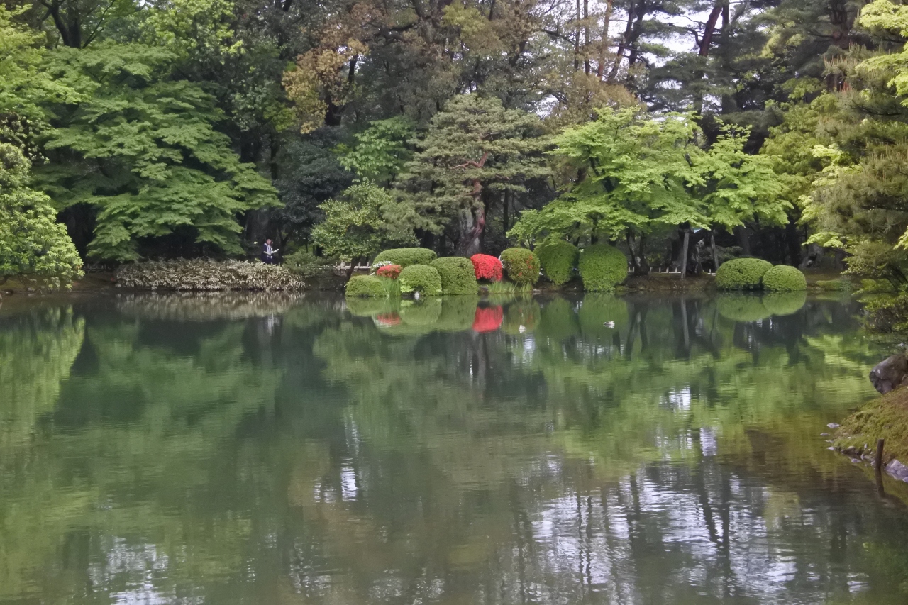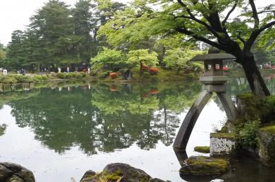 近江町市場からバスで兼六園まで行き、散策しました。桂坂口から入って、まずは、ことじ灯籠を見に行きます。写真を撮ろうとするのですが、海外からの(おそらく中国)の団体さんが次から次へと写真を撮るので、なかなか撮れません。。。という状況でした。