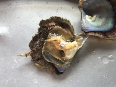 出でくる真珠は、当然、当たりはずれがあって、家族3人で、比較的良いのが1個。お姉ちゃんのがちょっと黒ずんでいて今一つなので、再度挑戦。もちろん追加料金です。