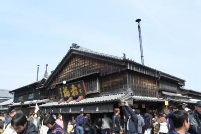 内宮さんをお参り後の散策、3月の連休なので、おはらい町の通りは人!人!人!歩きづらい!で、きっと赤福本店も超混みなのでは?と思いつつお店に行ったのですが、順番待ち~ってことはなくて、すんなり入れました。