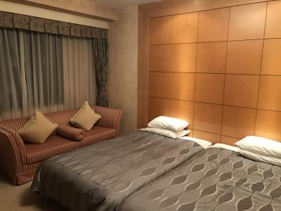 夜9時半頃にチェックイン。部屋は、6階のスイートルーム。ベッドが4つあって、広さは十分。部屋の真ん中に仕切りのような形で、テレビ、冷蔵庫などが収納された家具が置かれています。不自然な配置ですが、それなりに、便利。バス、トイレもそれなりに広くて問題ありません。