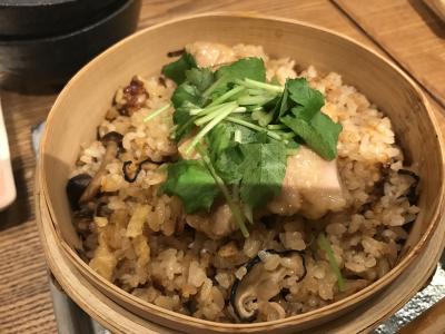 新幹線で東京駅着。夕ご飯を食べに、KITTEに直行です。5階のレストラン街に上がって、まずは、お蕎麦屋さんに行きますが、お蕎麦が終わってました。さて、どうしようかってことになりましたが、宮崎の鶏料理のお店をのぞきに。あと10分でラストオーダですけど。ということでしたが、こちらのお店にしました。