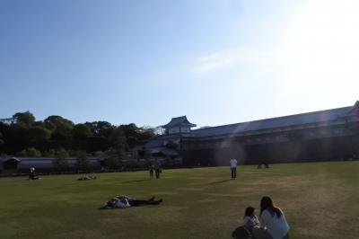芝生の広場で、気持ち良さそうに寝っ転がってる人があちらこちらに。天気がよく、気持ちいいです。子供たちが気持ちいいので、走り出しました。城の石垣をよく見ると、石の色がいろいろで、味わいがありましたね。