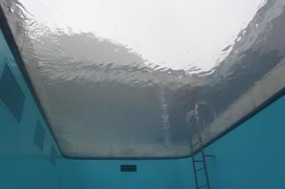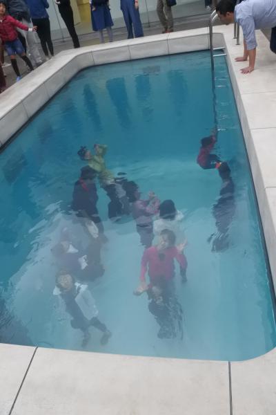 チケットを買って、有料ゾーンは、10時オープン。しばし待ちました。入場して、まずは、レアンドロのプール。すでに待ち行列ができてましたが、5分くらいで入れました。水のないプールの底から上を見上げるという不思議な感覚ですね。面白い!