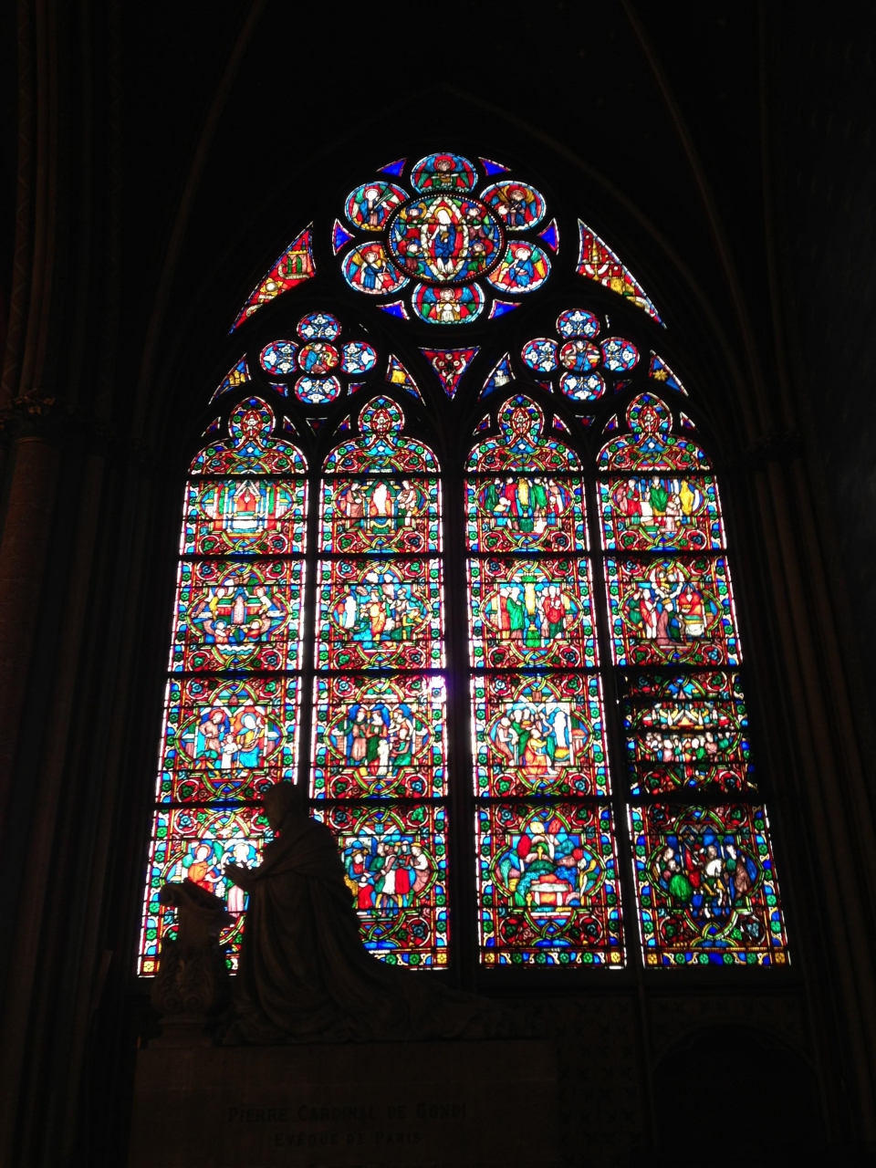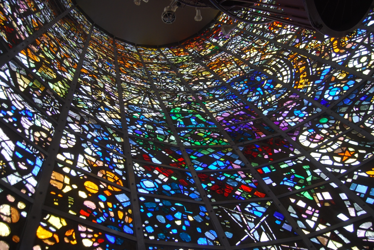 その後、らせん階段で登れる塔へ。中はステンドグラスできれいです。