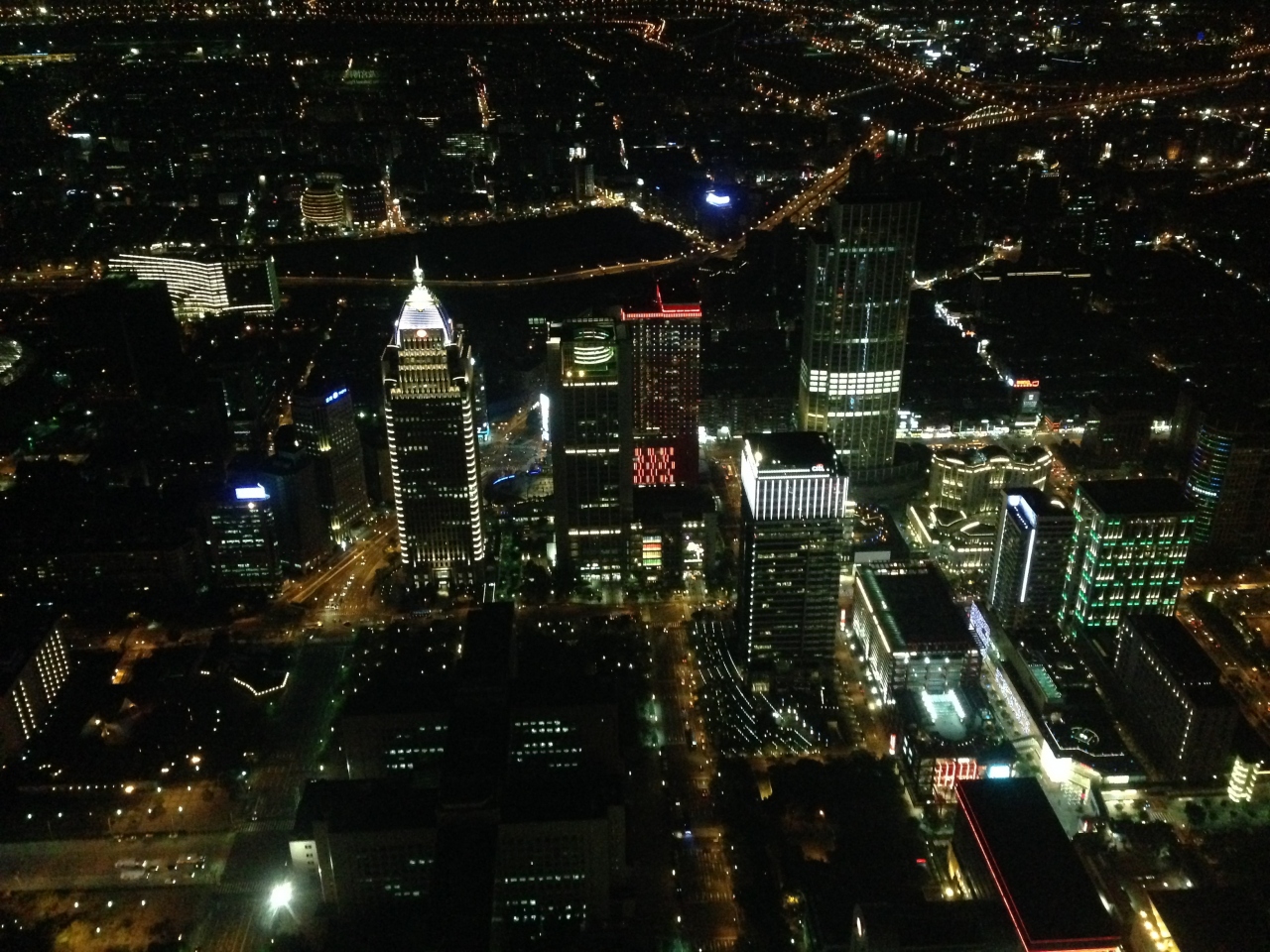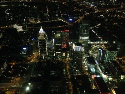 東西南北、それぞれ方向の夜景が望めますが、夜景としては、西側と北側がいいです。東と南は、ちょっと暗い。2フロアほど、階段で登ると屋外展望台に出れます。西側だけですが、夜景を堪能できました。