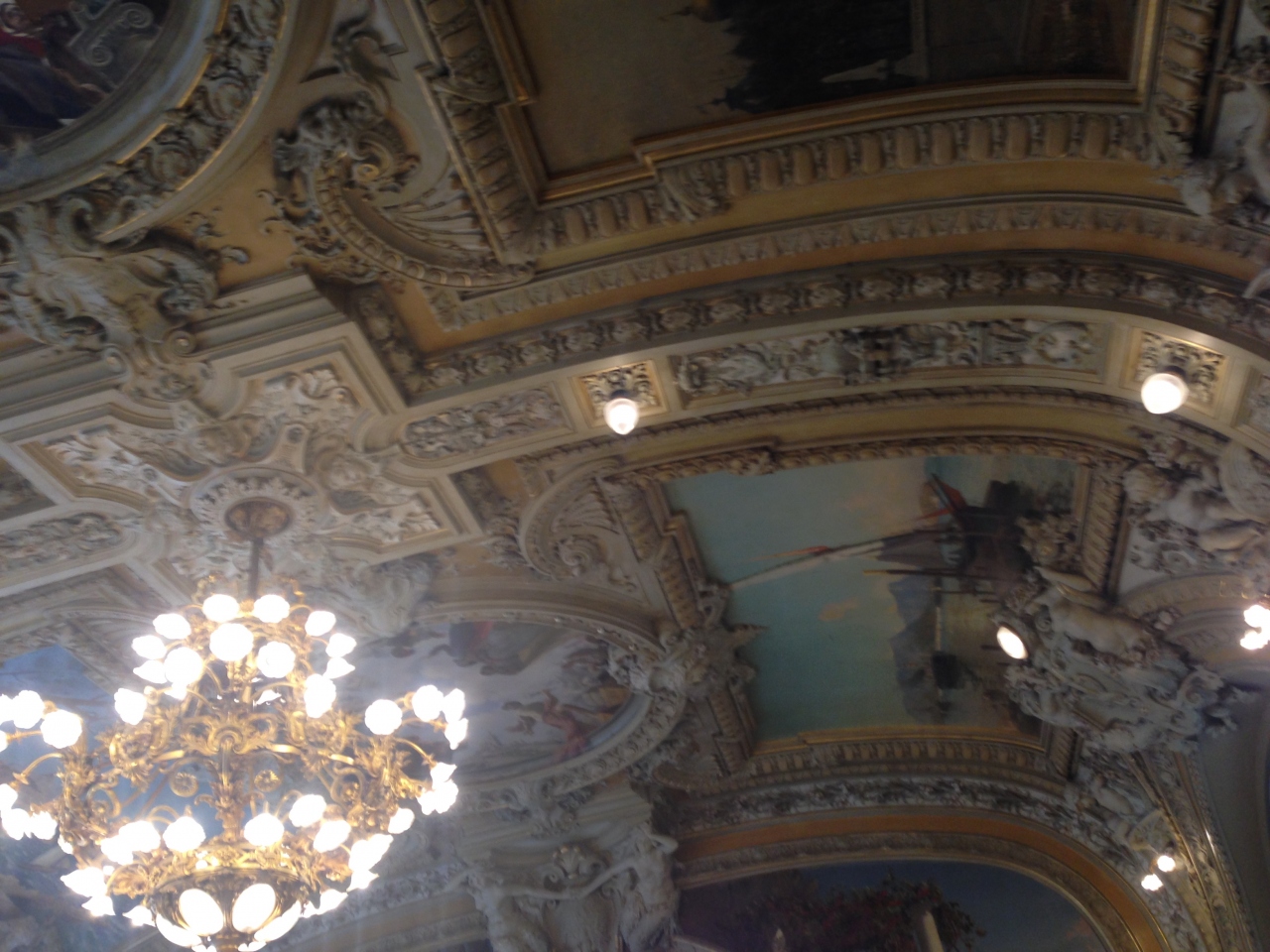 ちょっと奥のほうのテーブルに案内されて、窓際のいい感じの場所です。天井がなんとも豪華です。
