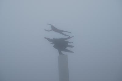 あとは、目玉焼きのオブジェ、彫刻を見ながら霧の中を散策しました。