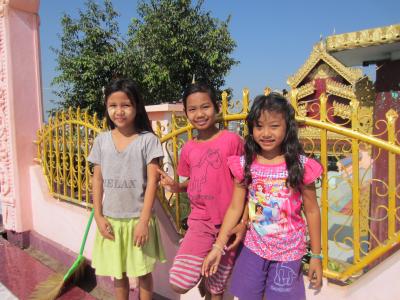 ミャンマーの女の子たち。ほっぺにタナカ(日焼け止めの白い粉)がかわいい...
