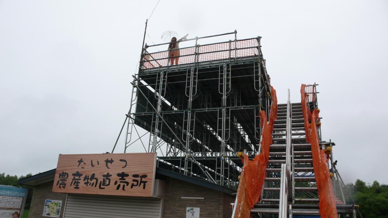 イントレ(やぐら)4段くらいくらいあがって田んぼをみると、
