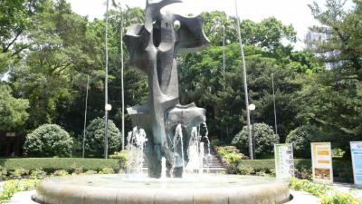 広場の中央には噴水があり、ポルトガルの大航海時代を象徴する地球儀が中に入っています。