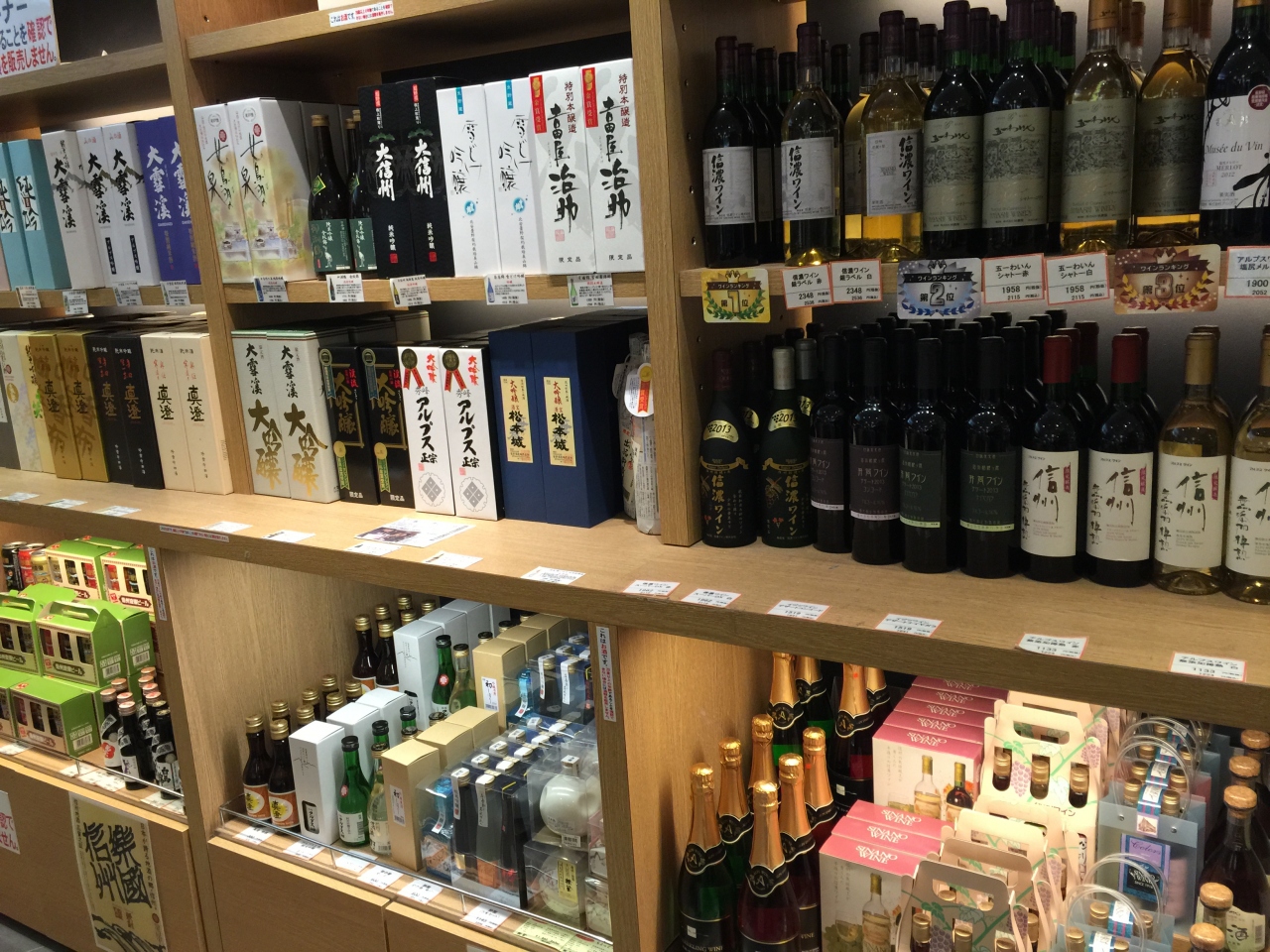 地酒や信州ワイン、地ビールも売られています。- 旅行時期