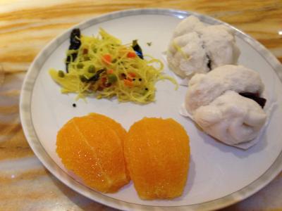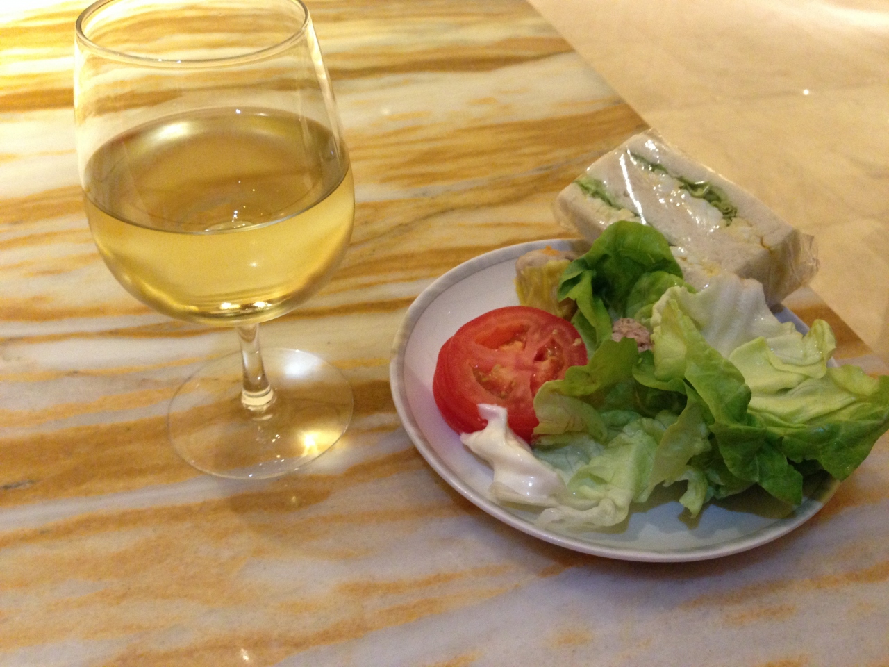朝食に軽くサラダ、フルーツのつもりがホットミールをいただき、シャンパン×2、白ワインを美味しくいただきました。
