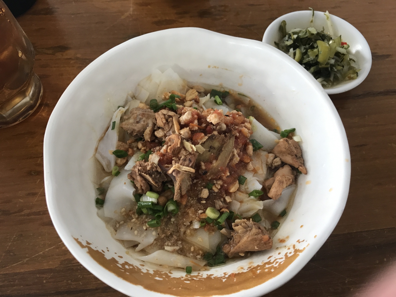 米粉の麺の上にカシューナッツを砕いたものなどがのって、