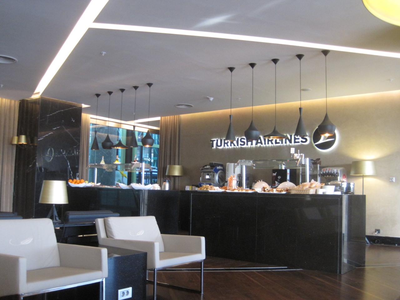 ラウンジも充分な広さで、軽食の種類も問題ありません。