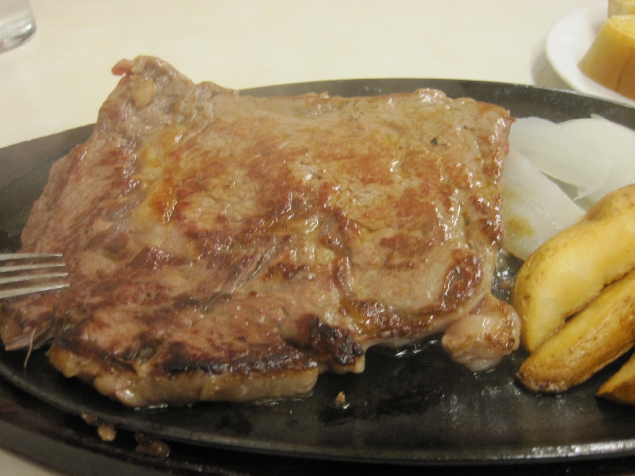 ステーキも薄切りで広がった状態の片面焼きで出てくるので、注文後の最終の焼き具合は自分で決められます。味は金額と相談しても申し分なし。- 旅行時期