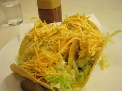 スープは懐かしい味、タコスは1皿4個なのでちょっと1人にはツラい。