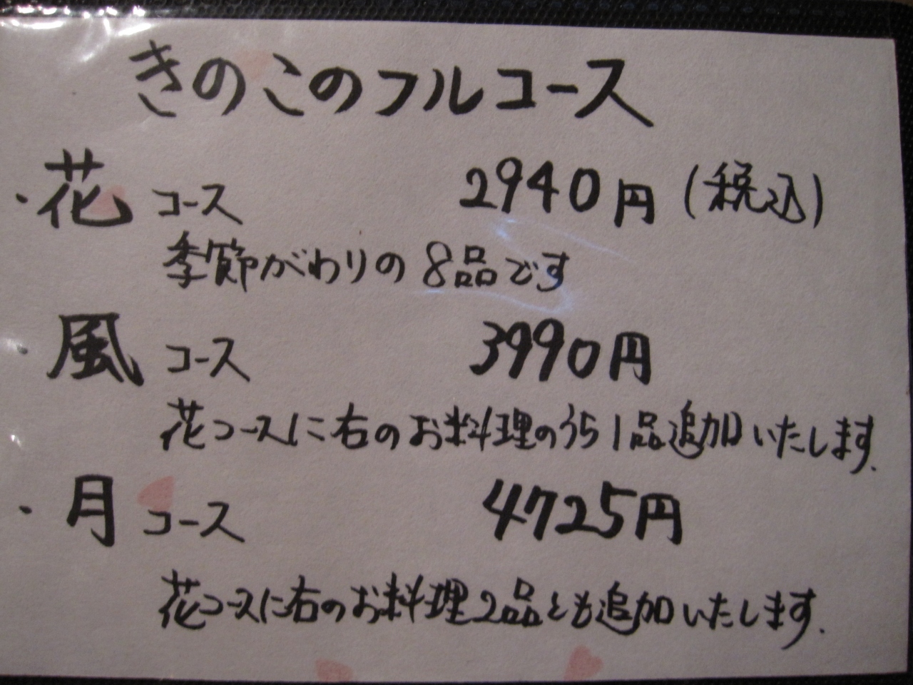 季節毎の新鮮なキノコ料理、メニューも折々に新しくなり、手頃な価格で楽しめます。