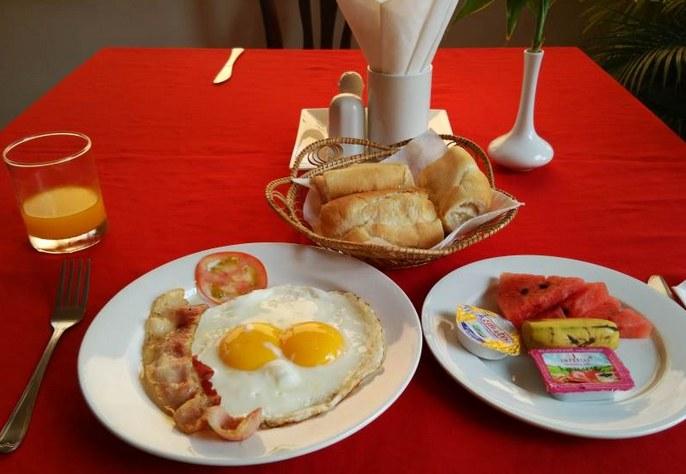 朝食は5種類ほどから選べて、結構美味しかった。