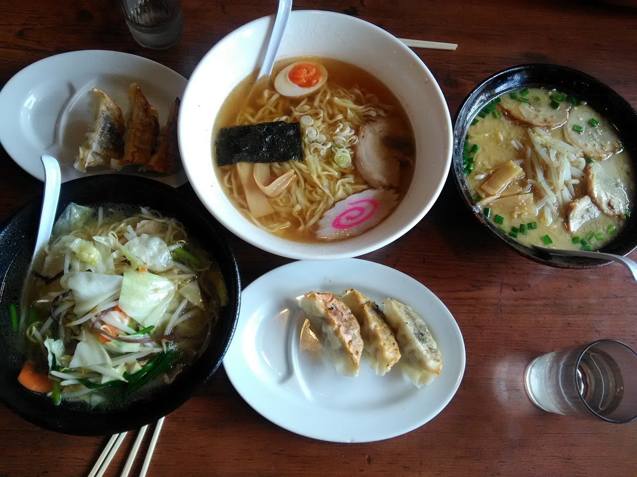 日光に行った際、家族のリクエストでランチにラーメン&炒飯が食べたいということで、近くにあったこちらのお店に行きました。お店の前の日光街道は大渋滞でしたが、お店は週末のランチ時、1組(10分ほど)待てば席に案内してもらえました。席は、カウンター、テーブル、座敷とあって、子供連れにも快適にお食事できるようになっていました。梵天ラーメン(大盛り)+半炒飯+餃子(Bセット)、こがし醤油チャーシュー+半炒飯+餃子(Bセット)、タンメンを頼み、家族でいただきました。どのラーメンも炒飯も美味しくて、子どもたちもとってもよく食べました。