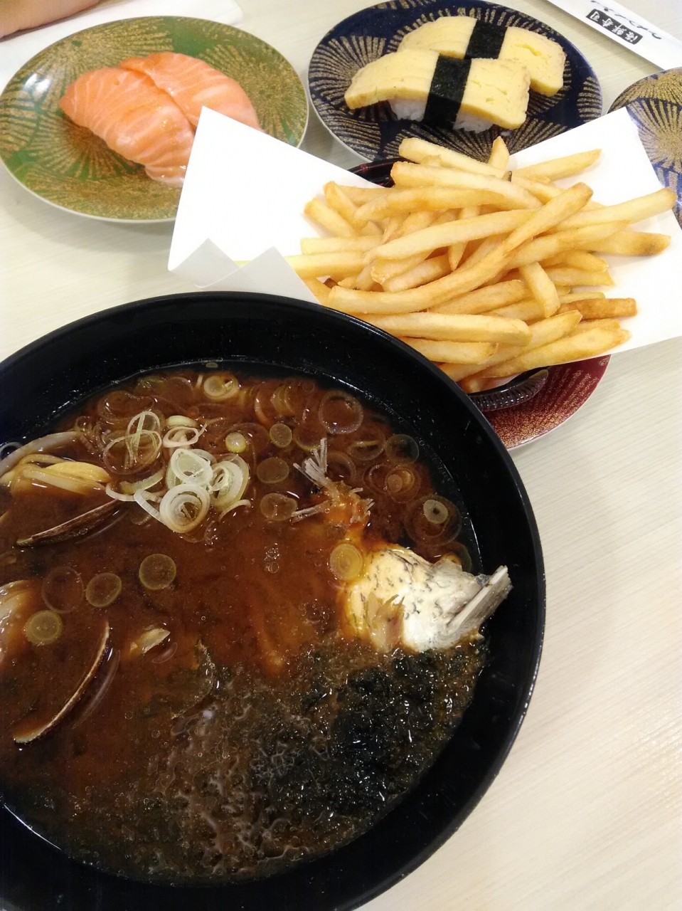 和歌山旅行の初日、和歌山城などに行った後、夕方南紀白浜入りし、三段壁や千畳敷、とれとれの湯に行った後、こちらに夕食を食べに行きました。GWということもあって、とても混んでいて、来店時は約1時間以上待ちということでした。実際には、進みがもう少し早くて(あきらめた人もいると思います)、30~40分ほど待って席に案内されました。お馴染みの近所の回転寿司とは価格帯が違って、一皿¥500超えのものもあり、好きなものを好きなだけというより、よく食べる子どもたちにはお皿の模様も少々気にしてもらって、夕食をいただきました。