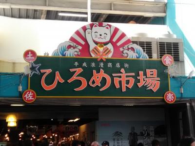 GWに家族で高知に帰省した際、お昼頃ランチでもと思って行ってみました・・が、場内は凄い人で、移動も小さい子どもには難しいくらい混雑していたので、こんな中で席を見つけて食事をするのは厳しいと思い、早々にあきらめ、高知城歴史博物館とひろめ市場のスタンプラリーをして、入り口で「アイスクリン」を食べて、出ました。近辺の商店街でもアイスクリンは売っていたけれど、ここのアイスクリンは、種類が5種類あったのに子どもたちはひかれ、満足げに食べていました。「アイスクリン」も土佐の味、高知に行ったら食べてもらいたいものの一つです。