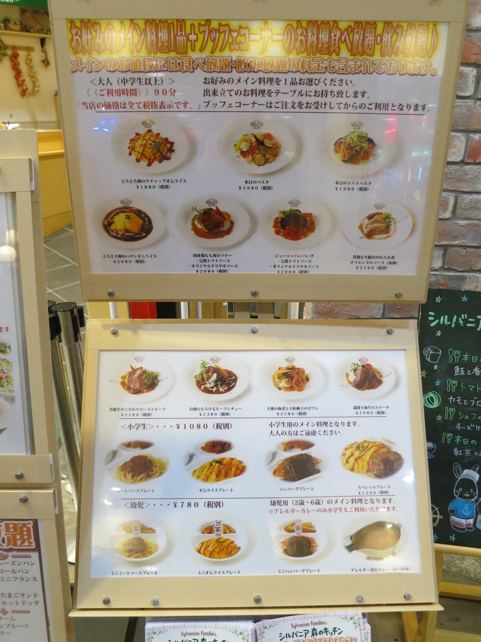 横浜ワールドポーターズ5Fにあるテーマパークレストランです。家族で横浜ワールドポーターズに行った際、娘のリクエストでこちらで夕食をいただきました。日曜日の夕食時でしたが、すぐに入店出来ました。私は「とろとろ卵のハヤシオムライス」¥2080(税別)を、子どもたちは「ミニハンバーグプレート」¥780(税別)をいただきました。こちらのお店は、メイン料理のお値段にビュッフェコーナーのお料理の食べ放題・飲み放題が含まれていました。ビュッフェコーナーのお料理は、フレッシュサラダにスープ、カレー、オードブル、ピザ、スナック、パン、デザート、ドリンクと大変充実していました。ボリュームたっぷりのメイン料理もあるので、ビュッフェをあれもこれもと思っても満腹になってそんなに食べられませんでした。子どもたちは食後に綿飴を作ったり、ソフトクリームをいただいたり、シルバニアファミリーのレストランに来たのを楽しんでいました。がっつり食べたいときにおススメの子どもが喜ぶレストランです。窓際の席は、眺めもとても良いです。