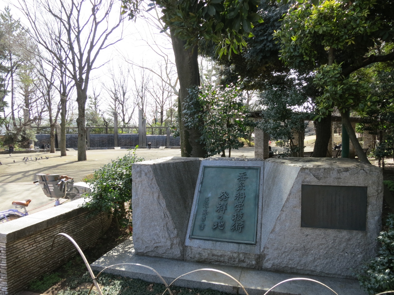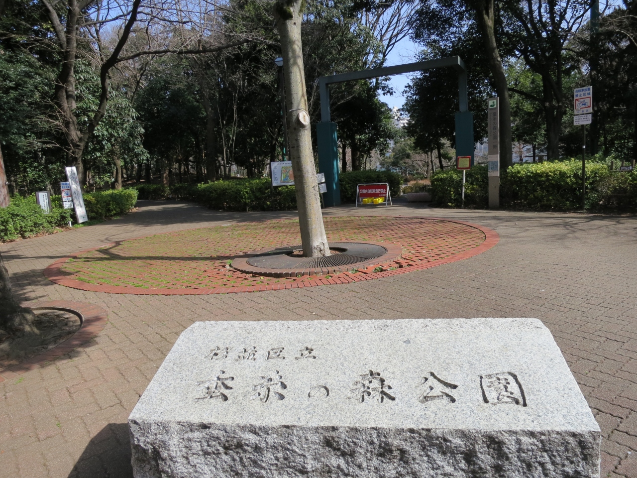 環七通りと青梅街道の交差点近くにある、明治44(1911)年に創設された蚕糸試験場の跡地に出来た区立公園です。園内には蚕糸科学技術発祥の地の石碑があり、旧正門や衛所が残っています。園内には、運動場や遊びの広場(遊具あり)、いこいの広場、つどいの広場などがあり、大滝や散歩道、花壇などもあって、区民の憩いの場となっています。週末の午前中に子どもたちと行きましたが、遊びの広場は小さな子ども連れの家族でにぎわっていました。