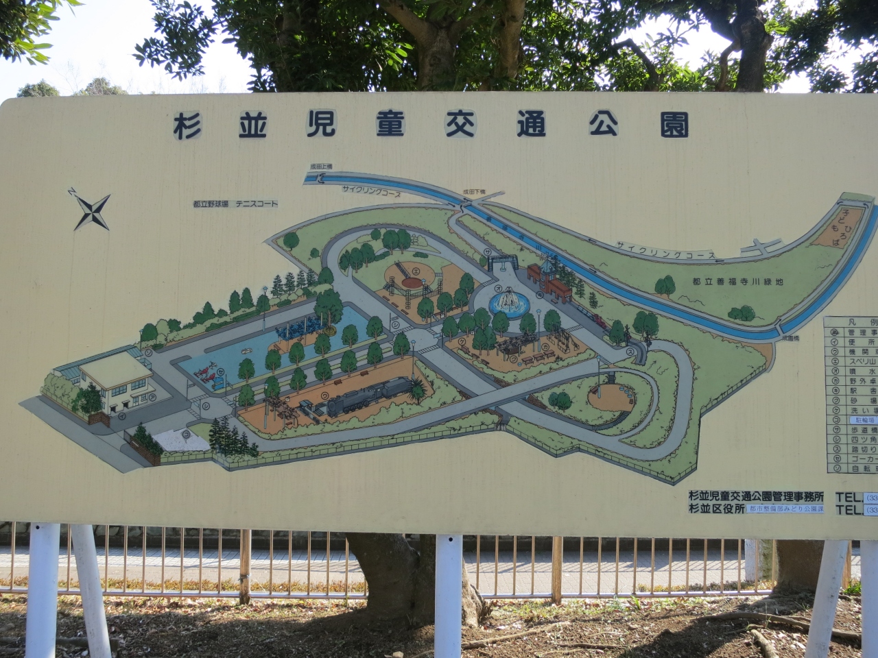 善福寺川緑地の一角にある区立の児童公園です。園内には、公道を模した道路や信号があり、自転車(貸し出し無料)や足踏式ゴーカート(貸し出し無料)に乗って遊びながら交通ルールを学ぶことが出来ます。園内には、その他蒸気機関車や砂場、遊具などがあり、子どもにとっては遊園地のように充実した公園で、終日親子連れでにぎわっています。自宅近くにもほしい子どもが大好きな公園です。