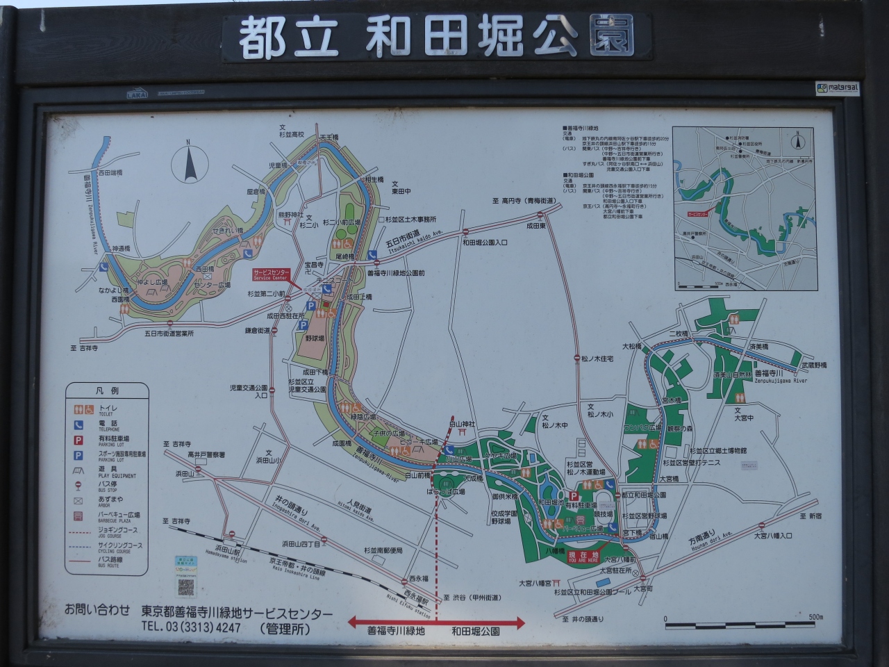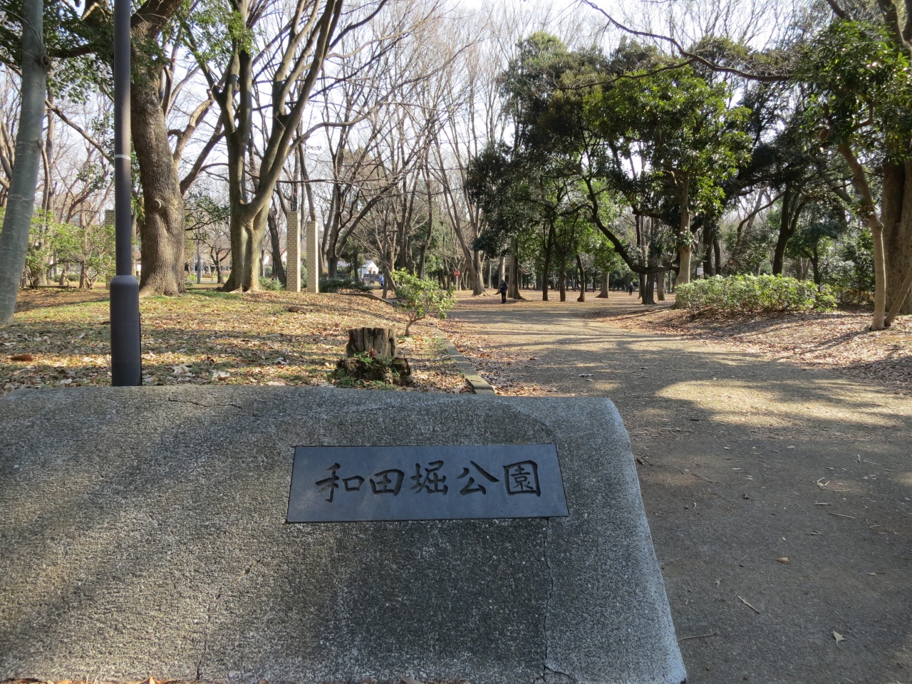 善福寺川が杉並区の中ほどで大きく蛇行するあたりに、善福寺川緑地につながって、善福寺川に沿って広かる公園です。善福寺川沿いは、両側に歩道が整備され、緑に覆われた川沿いのコースをランニングする人や散歩する人で終日にぎわっています。園内には、はらっぱ広場やケヤキ広場、和田堀池、BBQ広場、競技場、わんぱく広場、観察の森、済美山自然林などがあり、近くには大宮遺跡や松ノ木遺跡、大宮八幡宮などがある散歩するのにおススメの公園です。また春には桜が、初夏には新緑が、晩秋には紅葉が美しいです。