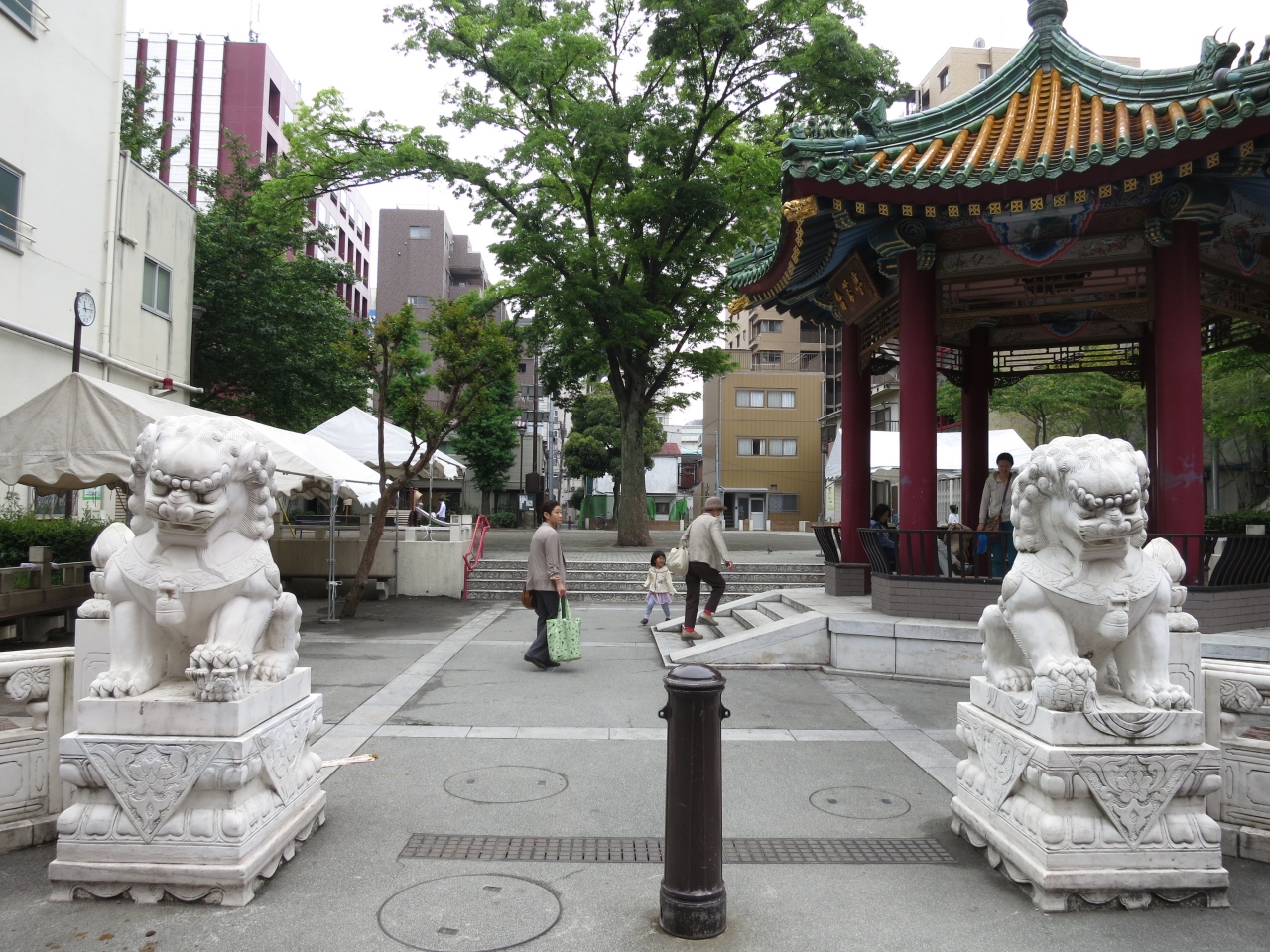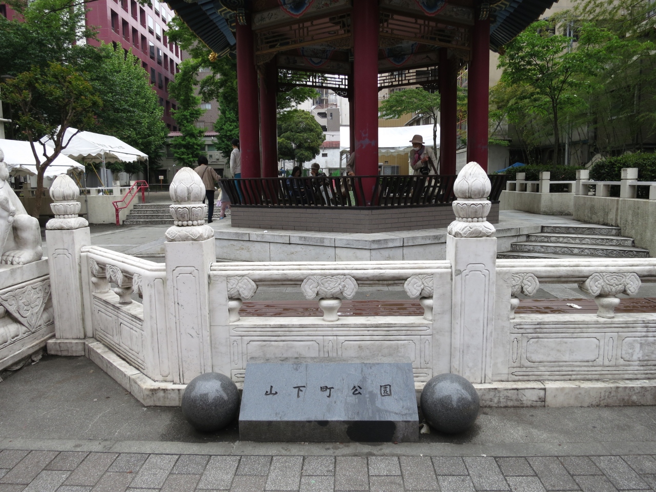 横浜開港資料館に隣接して、交差点の角にある広場です(開港広場前という信号があります)。公園の中心には噴水があり、周りには木立があって、ちょっとした広場といった感じですが、広場内には「日米和親条約締結の地」の記念碑や、「日米交流150周年記念植樹」「旧居留地90番地の大砲」「時計塔」「明治10年代に築造されたレンガ造りマンホールと下水管」などがあり、横浜の歴史を感じられる場所になっています。横浜開港資料館の入り口にあるレストランが、広場でパンを売っていたので、歩き疲れた子どもたちは、ここでパンを買っておやつタイムにしました。休憩にもちょうどよい、横浜散策の際には寄って見たい、横浜の歴史を感じられるスポットです。