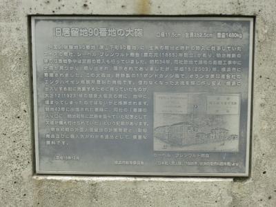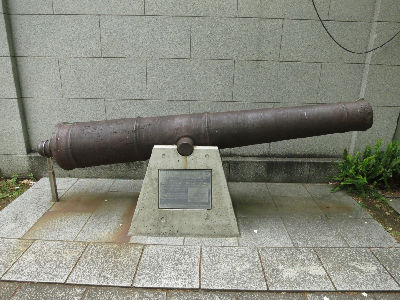 横浜開港資料館に隣接する開港広場の一角に屋外展示されています。外国人居留地90番地に、生糸の輸出と時計の輸入に従事していたスイスの商社、シーベル・ブレンワルト商会があり、明治維新の際の戊辰戦争中は武器の輸入もしていたそうです。昭和34年に、同社跡地で大砲が見つかり、平成15年に横浜市に寄贈されたもののようです。横浜散策の際には寄って見たい、横浜の歴史を感じられるスポットです。広場内には、「旧居留地90番地の大砲」の他、「日米和親条約締結の地」の記念碑や、「日米交流150周年記念植樹」「時計塔」「明治10年代に築造されたレンガ造りマンホールと下水管」などもあります。