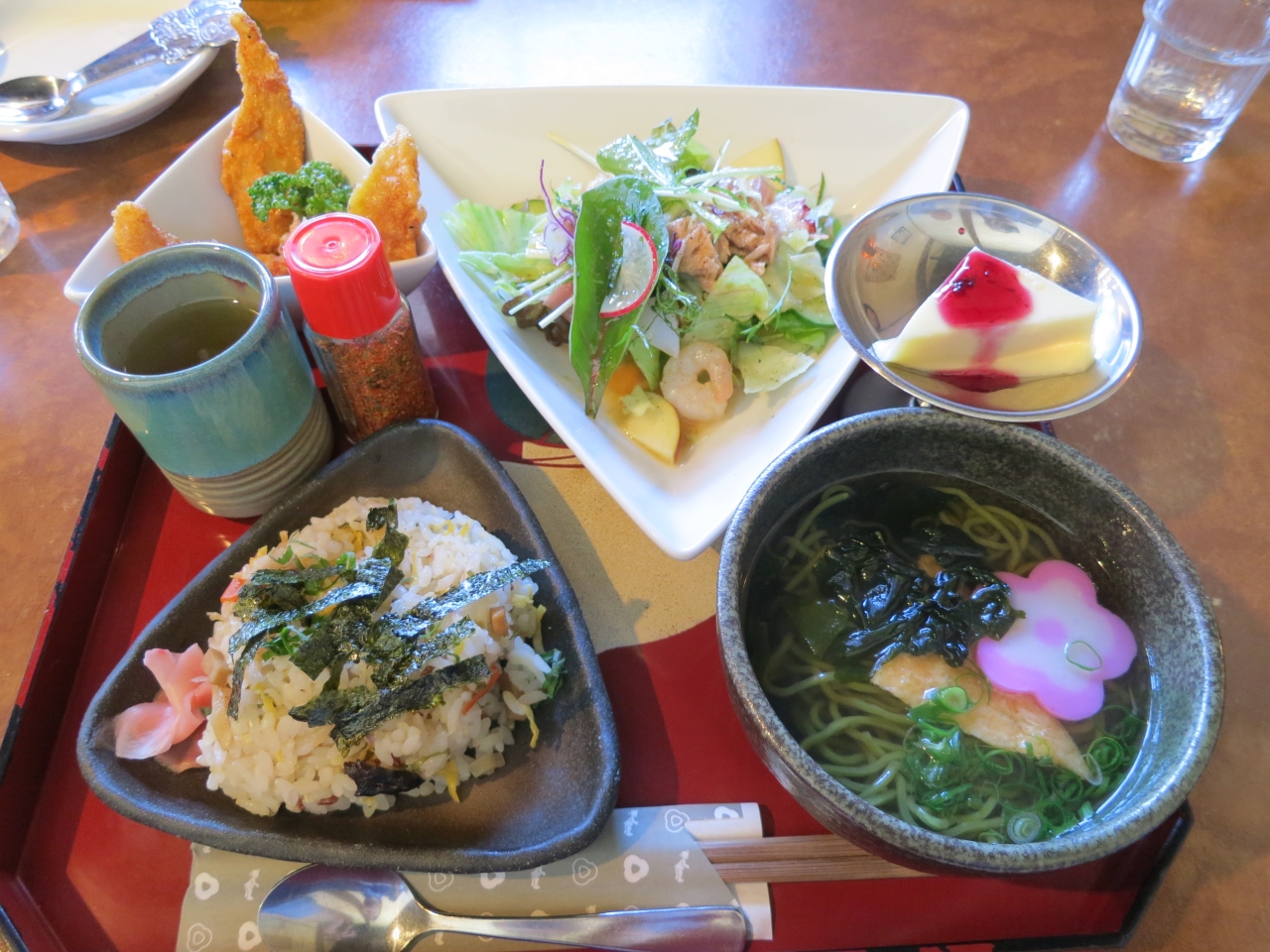 休日に家族でお買い物に来ていて、ランチに寄りました。懐石料理を中心に、天ぷら、寿司、丼もの、釜飯、うどん、そばといろいろなものが少しずつ食べられるセットメニューが充実していて、母が好きで親子3代でよく寄るお店です。キッズ用チェアーやキッズメニューもあり、子連れでのお食事にも最適です。この日は、春のおすすめ懐石「旬かご懐石」¥890をいただきました。一つの籠に収まった目にも鮮やかな懐石料理には、春野菜の天ぷらや筍ごはん、茶碗蒸し、サラダ、酢の物、お味噌汁、お漬物などがあり、充実の内容で、美味しかったです。家族でのお食事にオススメのお手頃価格で、セットメニューが充実の和食レストランです。
