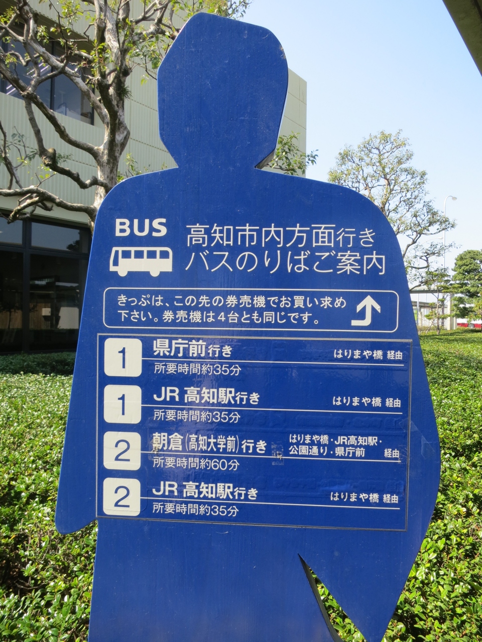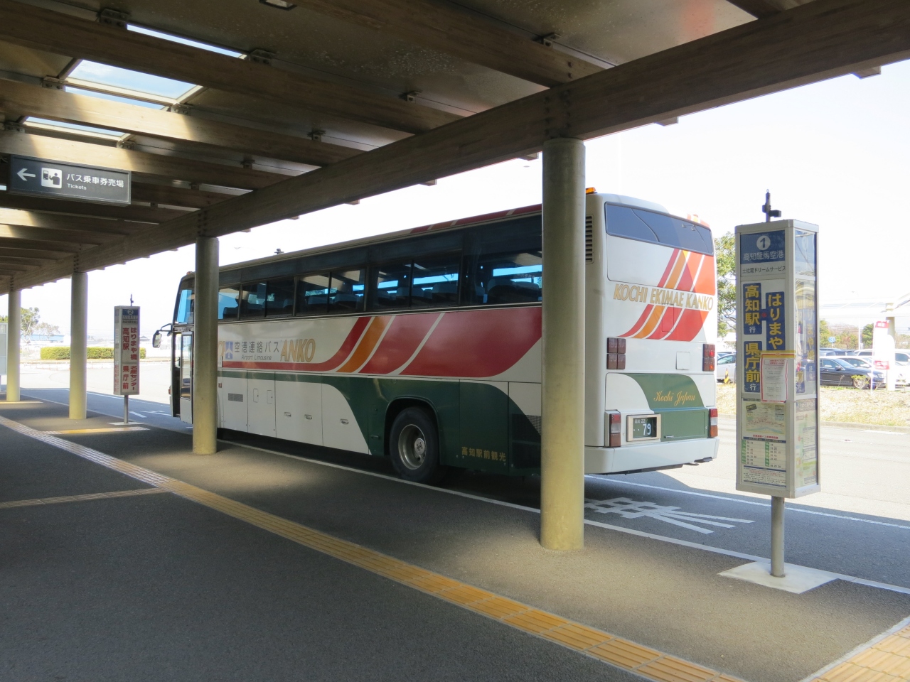 高知龍馬空港と高知駅又は県庁前を結ぶ空港連絡バスです。空港到着後によく利用しますが、航空機の到着時間に合わせて出発してくれるので、大変便利です。高知龍馬空港から高知駅・県庁前までの所要時間は、どちらもだいたい35分くらいです。きっぷは、空港を出たところのバス乗り場脇にある発券機で購入(¥700)します。JRを利用する際は、終点の高知駅まで行きますが、市内中心部に行きたいときははりまや橋で下車するのが便利です。