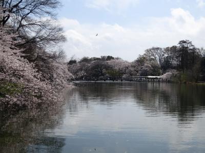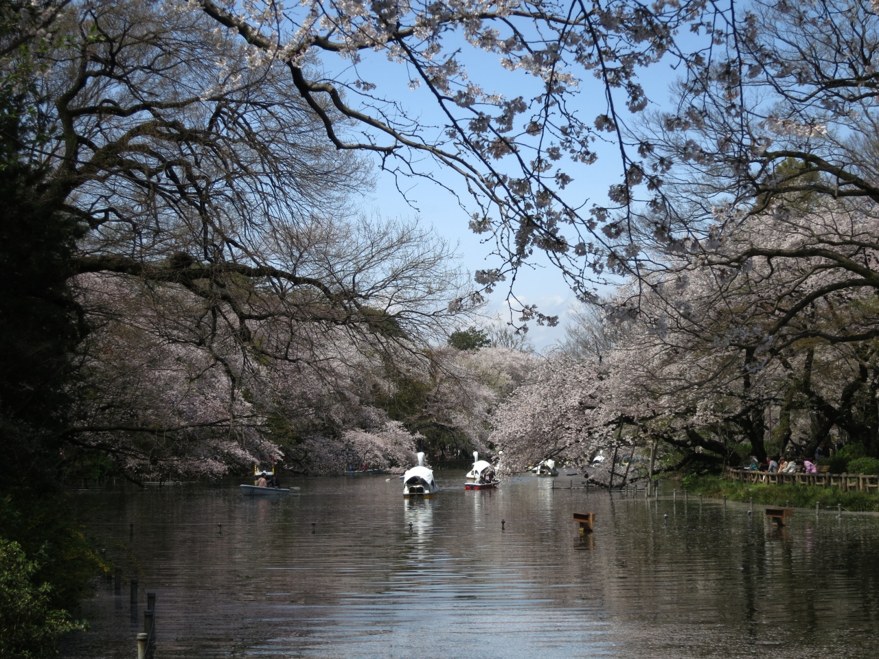 サクラが満開の時期に、子どもたちとお花見に行きました。広い園内をサイクリングをしながら、そして時々自転車を止めて散歩しながらお花見を楽しみました。園内には約500本のソメイヨシノやヤマザクラなどのサクラの木があり、井の頭池の周囲には約250本のソメイヨシノがあるそうです。池に向かって枝を広げているサクラや、水に映えるサクラ、水面に散る花吹雪など特に池周辺は見所沢山で、大変美しかったです。平日の昼間でしたが、お天気も良く、沢山の人でにぎわっていました。夕方からのお花見に向けて、ブルーシートで場所取りをしている人も沢山見かけました。園内は広いので、小さなお子さんと一緒なら、ベビーカーか自転車があると便利だと思います(お花見の時期の週末は、場所に寄っては身動きできないくらい混んでいるので、要注意です)。いつも多くの人でにぎわっている井の頭公園ですが、お花見の時期は一番の人手だと思います。それでも見に行きたい大好きなお花見スポットです。