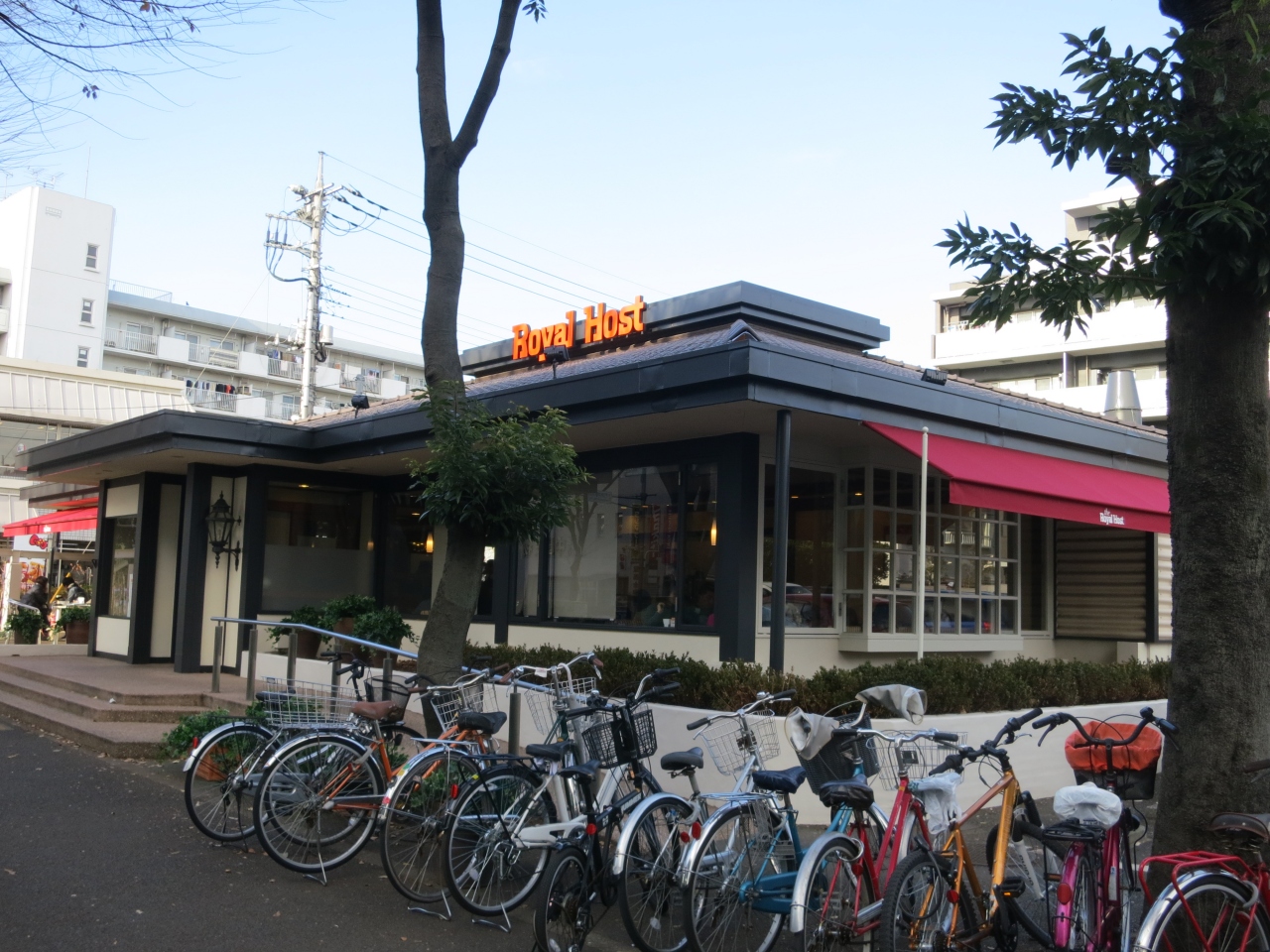 青梅街道沿いにある駐車場のあるファミレス