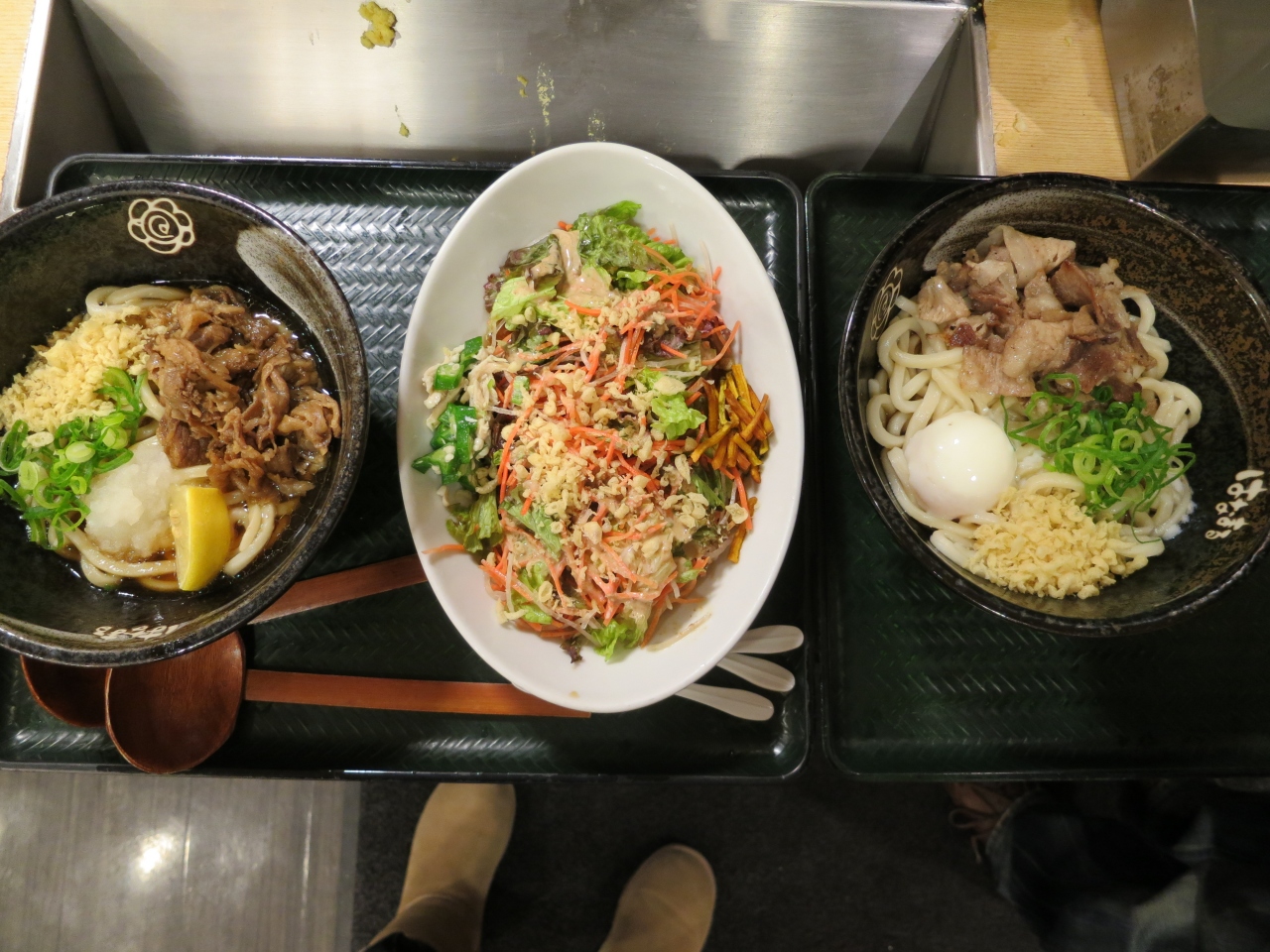 吉祥寺でお買い物をした後のランチに家族で行きました。14時前だったけれど、レジはお店の入り口辺りまで列になっていました。すっと行ってみたいと思いながらも、この日が【初】はなまるうどんでした。ならんだ列はすぐに自分の番が来、注文し、あっという間におうどんが出来上がり、お会計。てんかすなど好きなトッピングをして、お席に持って行けば、もう食べれる!そのスピーディさに感動しました。いただいたのは、コクうまサラダうどん1日分の緑黄色野菜小¥500です。野菜がてんこ盛りになって、見た目はボリューム満点。いろいろな野菜が入っていて、野菜とおうどんが美味しくて、あっという間に完食しました。子どもたちも美味しい美味しいとよく食べました(子どもたちは牛肉おろしぶっかけうどん小¥400をいただきました)。お腹が空いている時にすぐ食べれて、美味しくて、お財布にもやさしい!これからも利用したいと思います。お店はB1Fで、ビルにはエレベーターがあるのですが、B1Fには停まらない(ボタンが押せない)ので、ベビーカーで行く場合は注意が必要です。お店の方に声を掛けると、B1Fで停まるようにしてくれるようです。