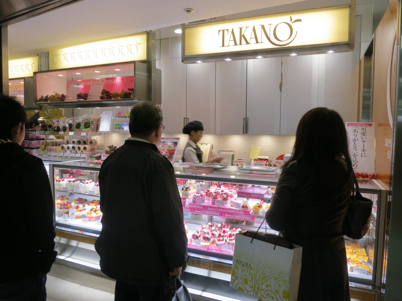 新宿に出掛けた際、帰りにこちらで家族へのお土産のケーキを買いました。JR新宿駅中央東口改札の真正面にあり、22:00までやっているので、帰宅前にお土産を買うのにとても便利です(電車が混む時間帯は持って帰るのが大変ですが・・・)。美しいケーキたちが沢山ショーケースに並んでいて、目移りしそうでした。お店左側には、フルーツジュース券売機が設置されていて、ジューススタンドで生ジュースも飲めるようになっていました。果物専門店新宿高野の生フルーツジュース!飲んでみたいです。
