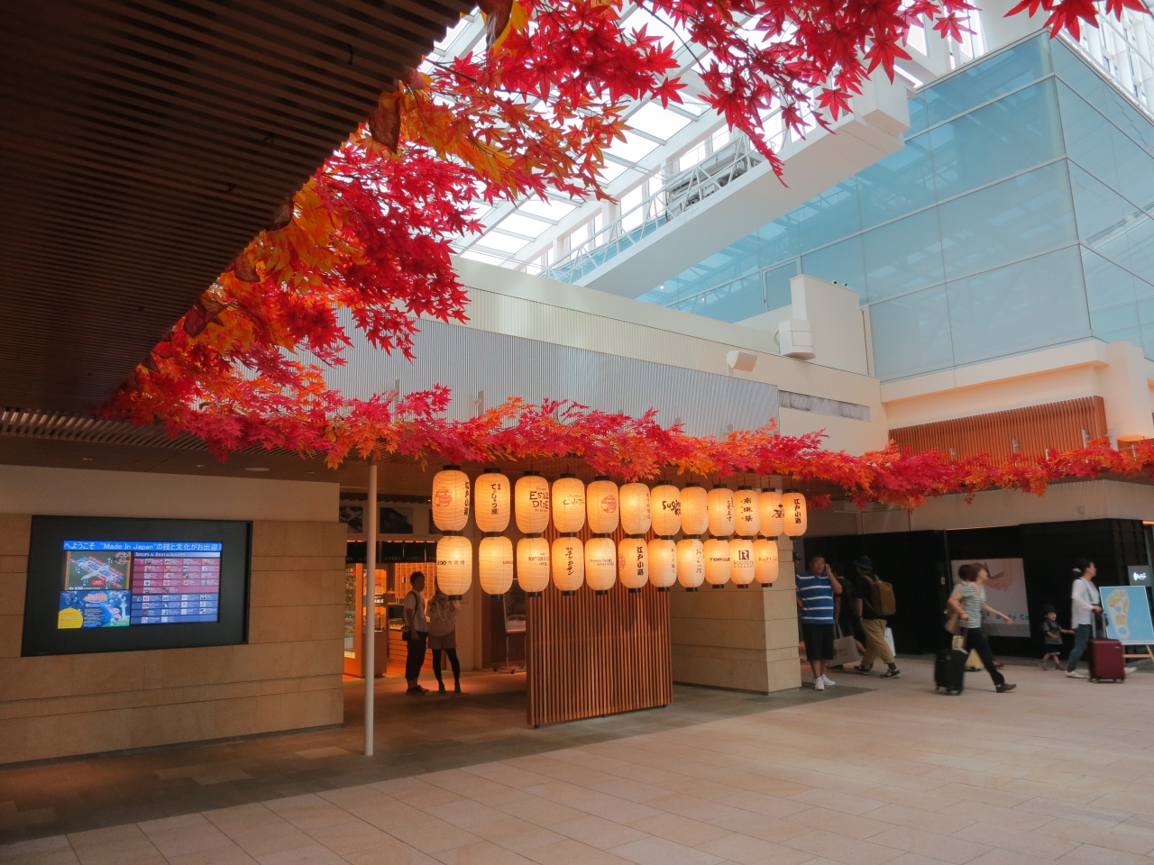羽田空港利用後に時間があったので、まだ行ったことのなかった国際線旅客ターミナルに寄りました。国際線旅客ターミナル4階にある江戸の街並みが再現された江戸小路は、至るところにもみじが飾られ、秋の様相を呈していました。江戸小路の中をレストランやカフェ、ショップを見ながら散歩するだけでも楽しい場所でした。9月の3連休に行きましたが、『おじゃる丸とあそぼう!』というイベントがやっていて、スタンプラリーもやっていました。江戸舞台では、おじゃる丸のお月見が展示されていて、子どもは大喜びでした。羽田空港国際線旅客ターミナル利用の際には、寄ってみると楽しいと思います。5階には展望デッキもあり、美味しいものも揃っているし、ショップも充実しているので、ちょっとしたお出掛け先にもオススメです。