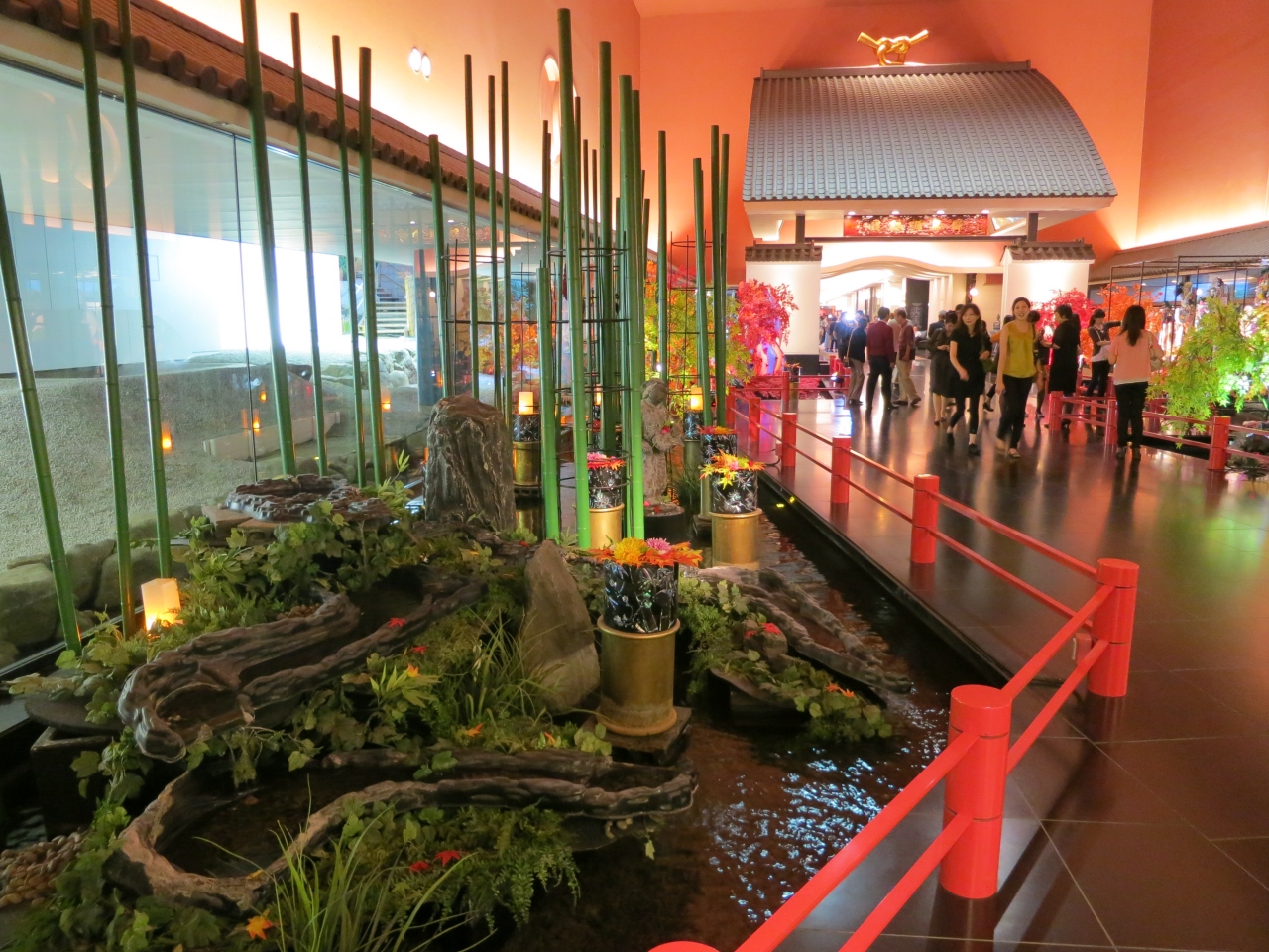 友人の結婚式などで何度か行ったことのある目黒雅叙園ですが、久しぶりにパーティで行って来ました。この日は、『華道家假屋崎省吾の世界~百花絢爛~』が開催中で、1階は至るところに花が生けられ、一層華やかな雅叙園になっていました。