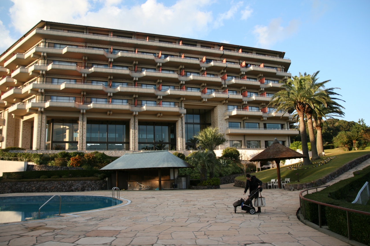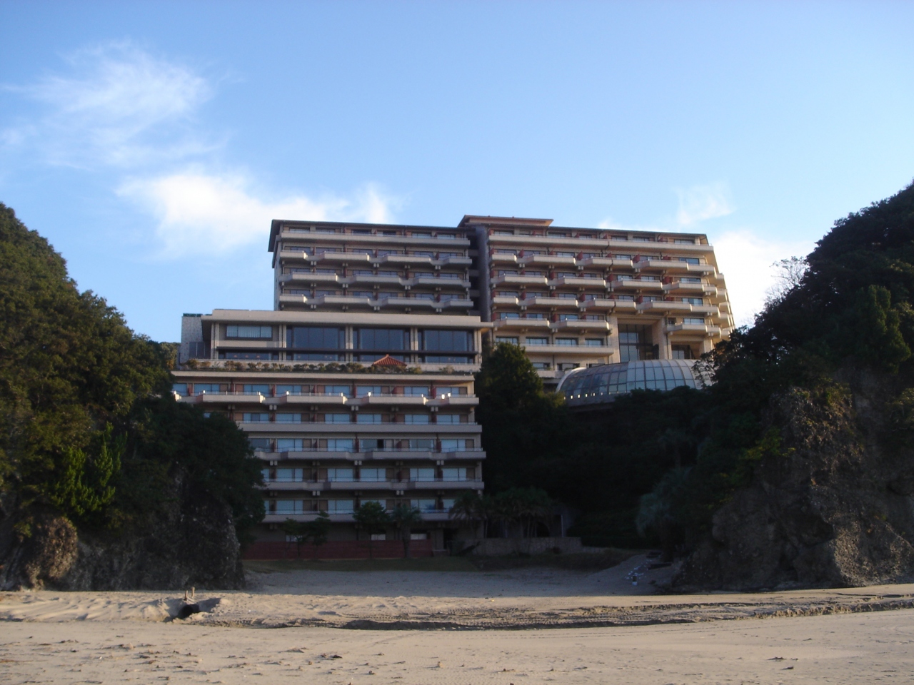 多々戸浜と入田浜の間の岬の上に建つ最高のロケーションのこのホテルは、全室オーシャンビューのお部屋で、ビーチへの直行エレベーターや、直径30mの大型プール、滑り台付き子ども用プール、直径20mの温水インドアプール、天然温泉の大浴場、江戸城に使われた伊豆石を切り出した後の洞窟を利用した洞窟風呂などを備えたリゾートホテルです。