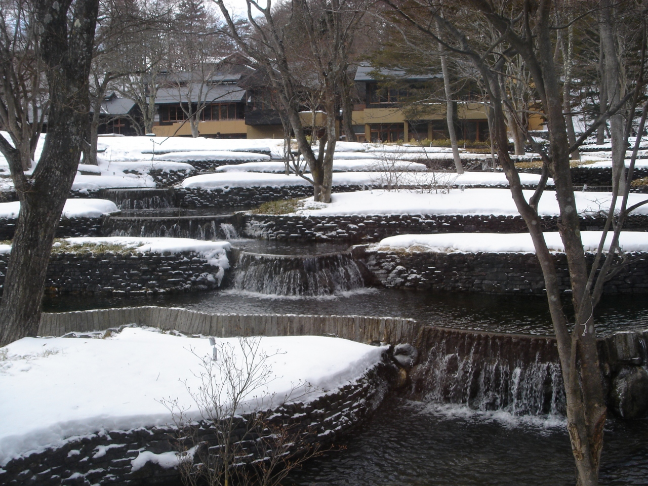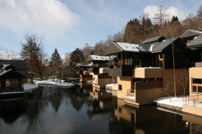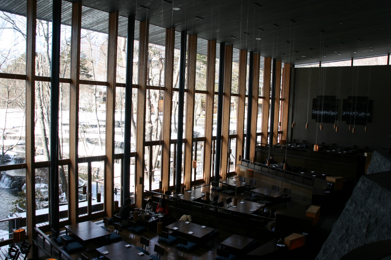 星野エリアの入り口にあるレセプションに到着し、説明を受けると、専用車(星のやのエンブレムの付いたキューブ)で滞在するお部屋に送ってくれます。林道を抜けると、そこには水辺と木々とコテージの集落が創り上げる美しい空間が広がっていました。お部屋の大きな窓やテラスからもその美しい景色を眺めることができ、滞在中は自然を感じながら、静かにゆっくりと過ごせました。お部屋にテレビはなく、持って行った音楽を聞きながら、窓の外の自然を眺めたり、本を読んだり、話をしたり、ぼぅ~っとしたり。日常ではなかなか送れないゆったりとした時間を過ごすことができました。2日目は朝から大雪で、1日目とはまた違った幻想的な景観を見ることができました。