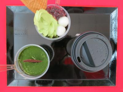 羽田空港利用後に時間があったので、まだ行ったことのなかった国際線旅客ターミナルに寄り、休憩を兼ねてこちらのお店に入りました。京都に本社のあるお茶屋さんの茶カフェで、3階の出発ロビーからエスカレーターで4階に上がるとすぐ、赤い傘と長いすが見える日本を感じるお店です。メニューは、スイーツとドリンクで、カウンターで注文して受け取るセルフ方式です。羽田空港で一番人気の「抹茶白玉ソフト」¥650と羽田空港限定の「抹茶ティラミスセット」¥700(抹茶ティラミスとお茶のセット)を頂きました。どちらのスイーツも納得の味で、いいお茶屋さんの甘味といった感じがしました。一番驚いたのは、セットで付いてきた玄米茶です。ティバックのお茶で、期待は全然していなかったのですが、今まで飲んだことのないクオリティで、美味しくて驚きました。それなりの玄米茶を家で煎れるよりも美味しいくらいのよいお味でした。日本を感じる店内で、和の甘味をいただきながら、旅の合間にゆっくりするのにオススメです。