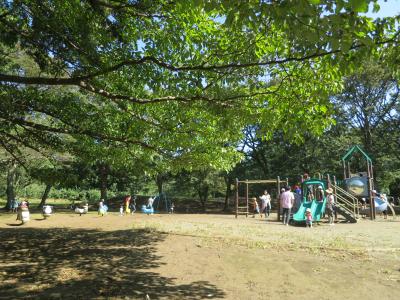 駐車場に車を止めて、バーベキュー広場を中心に、アスレチックや木製遊具のあるわんぱく広場、芝生広場、いこいの広場などを散歩しましたが、森の中に遊びに来たかのような雰囲気で、気持ちいい森林浴が出来ました。どんぐりやくぬぎの実、銀杏などの木の実も沢山落ちていて、子どもと集めたりもしました。