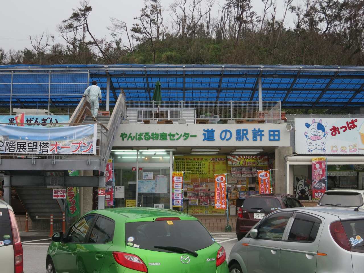 許田ICを降りて数分のところにある道の駅で、いろいろな観光地の割引チケットが充実しています。沖縄美ら海水族館の割引チケットは\1550で購入できます。コンビニやホテルなどでも扱っていますが、ここが一番安いように思います。ただクレジットカードは使えないのご注意ください。その他、チョコもちやおっぱソフトクリームなども人気でした。夕方に行くと、ご当地グルメ(お惣菜)が値引きになっていました。この辺を通るときには、ぜひ寄ってみるといいと思います。ご当地グルメや近くで取れた新鮮なお野菜、果物を見るだけでも楽しいです。道の駅の前は海なので、潮の香りも楽しめます。