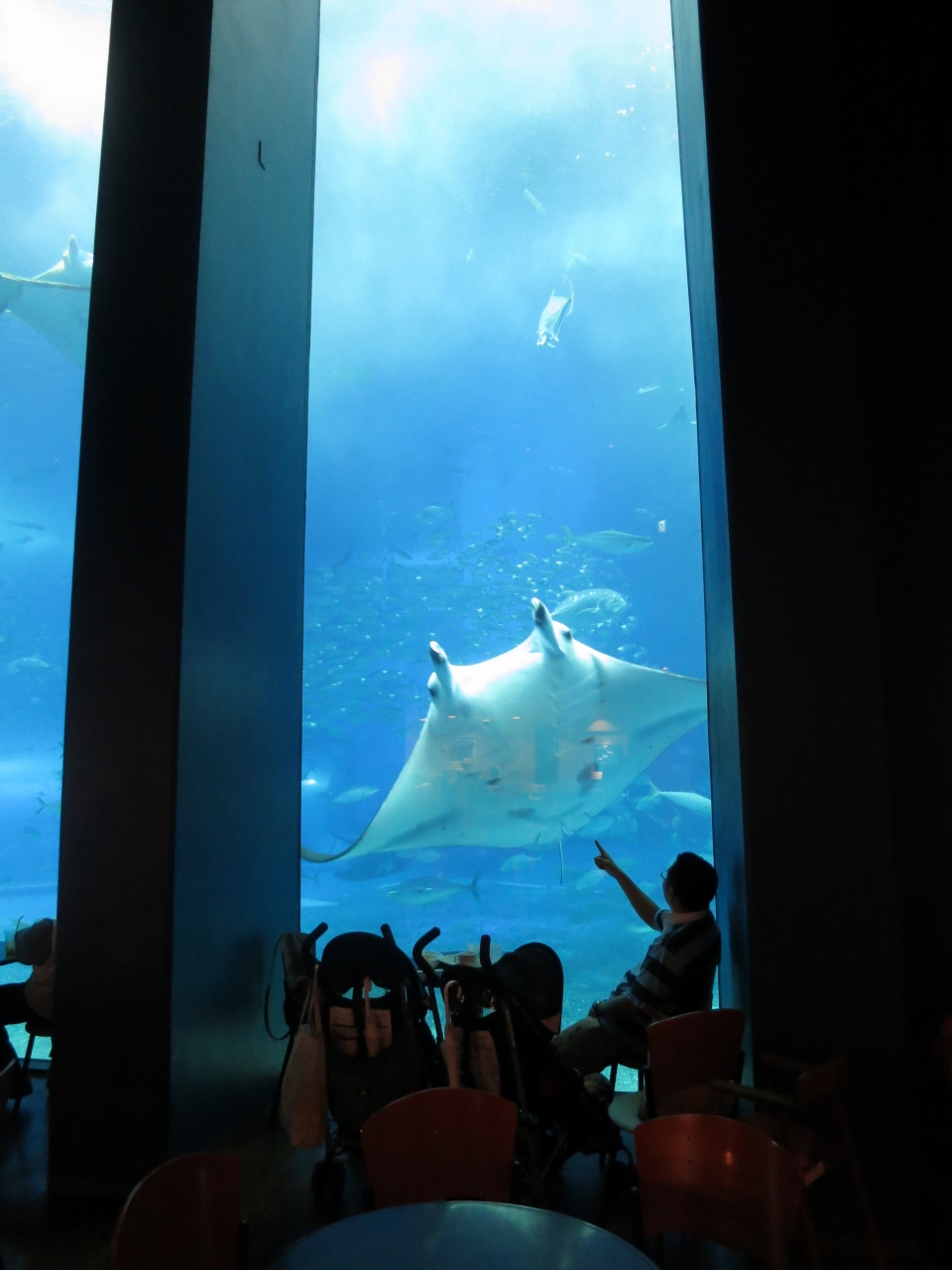 黒潮大水槽の横にある軽食が食べられるカフェです。先に席を確保し、食事を注文し、カウンターで受け取るセルフサービスです。18時頃行きましたが、空いていて、水槽前に座ることができました。メキシカンタコライス\600とカルボナーラ\500を頼みましたが、どちらも思っていたよりは美味しかったです。メニューは多くはなく、簡単なものだけど、ゆっくり大水槽を観賞したい人には最高のカフェだと思います。ジンベイザメやマンタ、魚たちが急接近してきたりして、時間を忘れて楽しめます。