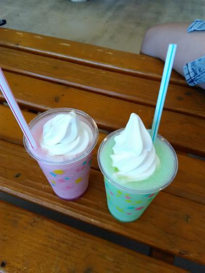 夏休みに北海道を家族旅行中、北海道旅行6日目、開園時間9:30から旭山動物園に行きました。朝は小雨で、少しすると止み、その後は猛暑日となり、暑い日でした。子どもたちと一通り園内を見た後、車(東門駐車場を利用)に戻る前に、こちらのお店で、「フロートメロン」と「フロートイチゴ」を買って、食べていきました。夫は車を先に冷やしに行ってくれ、その間に子どもたちは、いっぱい歩いて疲れた体をフロートで癒し、クールダウンしました。暑い日にはぴったりのスイートドリンクでした。