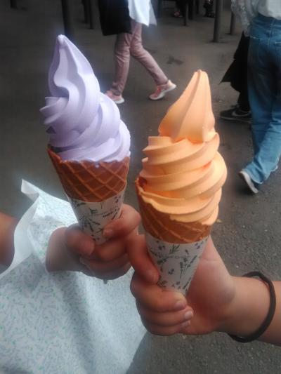 家族で北海道旅行中に、「北海道バルーンフェスティバル」を見に上士幌町へ行ったけれど、早朝からの雨で、午前(5:30~)のタスクフライトは中止となったので、近くのナイタイ高原牧場に行きました。日本一広い公共牧場は、想像を超える広さで、牧歌的な風景が広がっていました。頂上に向かうに連れて、霧?雲?の中に入り、山頂は真っ白でした。真夏だけど、この日は最高が15℃で、凍える中、それでも食べたいというソフトクリームを家族で一人一本ずつ食べ、大人は温かいコーヒーも飲み、霧?雲?の中の寒い山頂を少し散歩しました。山頂は視界不良で残念だったけれど、山頂までの道すがら美しい、十勝らしい牧場風景が楽しめてよかったです。