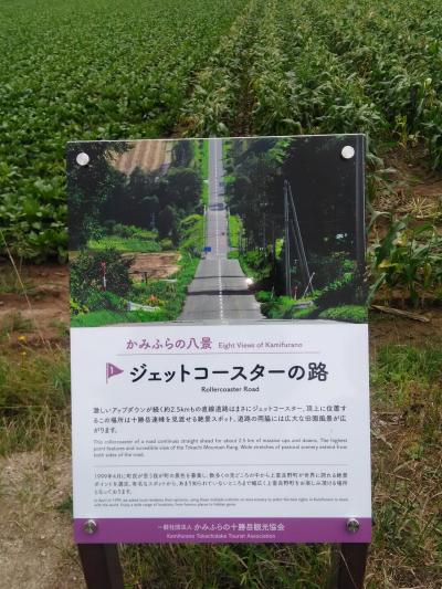 北海道を家族で旅行中、「かみふらの八景」にもなっている「ジェットコースターの路」へ行きました。分りづらいので、あらかじめ調べて、カーナビでチェックして向かいました。激しいアップダウンが続く約2.5kmの直線道路で、道路の両側には広大な田園風景が広がっていました。この路沿いにも家があり、このおうちの人は、アップダウンが激しい道を毎日通り、大変だと思いました。