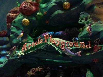昼食後、FPの「ニモ&フレンズ・シーライダー」に乗り、それからマーメイドラグーンへ行きました。午後になり、パーク内は混んできた印象で、マーメイドラグーン内のアトラクションも待ち時間が長かったので、「マーメイドラグーンシアター」はFPを取り、その待ち時間にしばらくこちらで自由に遊びました。1・4・7歳の子どもたち、それぞれ自由に探検したり、動き回って、とっても楽しそうでした。ずっとベビーカーに乗っていた1歳の子は、特に自由に動けて、行きたい所に行き、触りたいものに触れ、上りたいところに上って、とっても楽しそうでした。待ち時間もなく、自由に遊べて、子どもたちにとって最高の遊び場のように思います。- 旅行時期